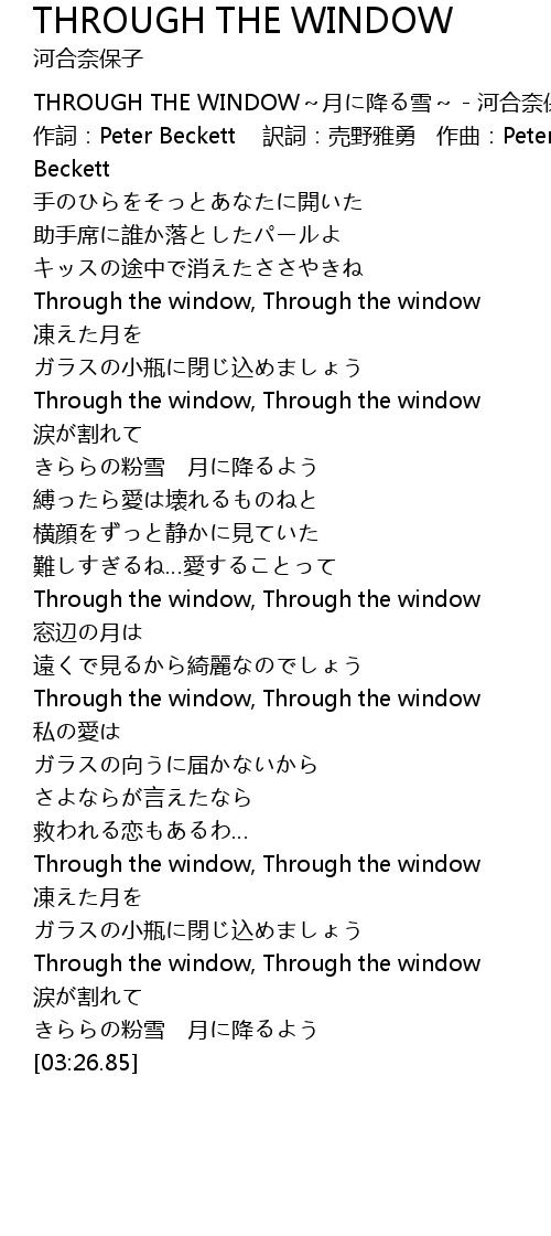 | [00:00.12] | THROUGH THE WINDOW~月に降る雪~ - 河合奈保子 |