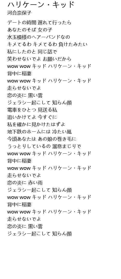 | Song | ハリケーン・キッド |