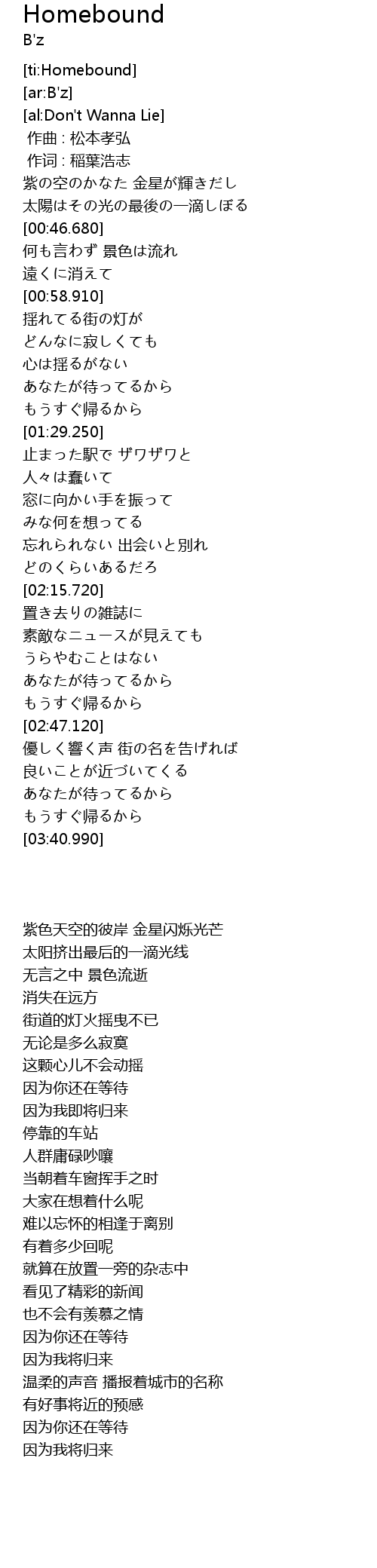 | [00:01.00] | 作词 : 稲葉浩志 |