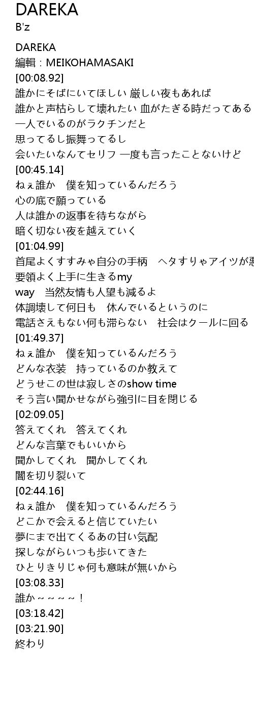 | [00:46.55] | ねぇ誰か 僕を知っているんだろう |