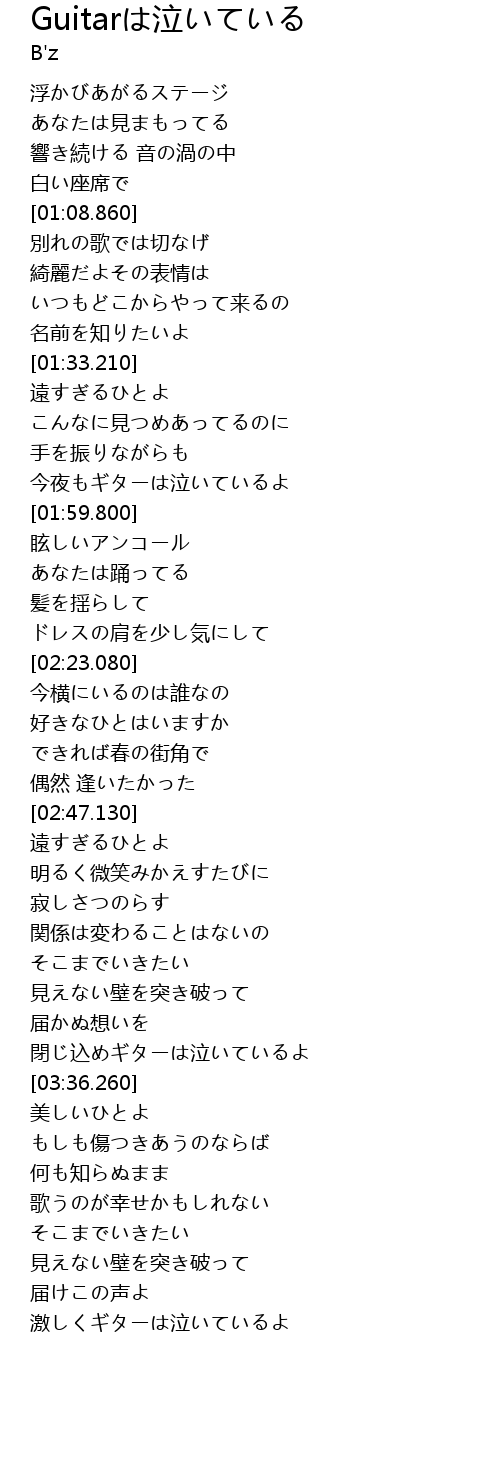 | [01:52.010] | 今夜もギターは泣いているよ |