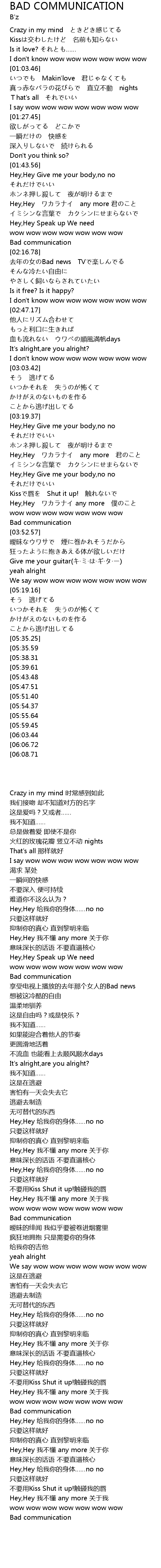 | [07:03.53][05:55.64] | Kiss chún Shut it up! chù |