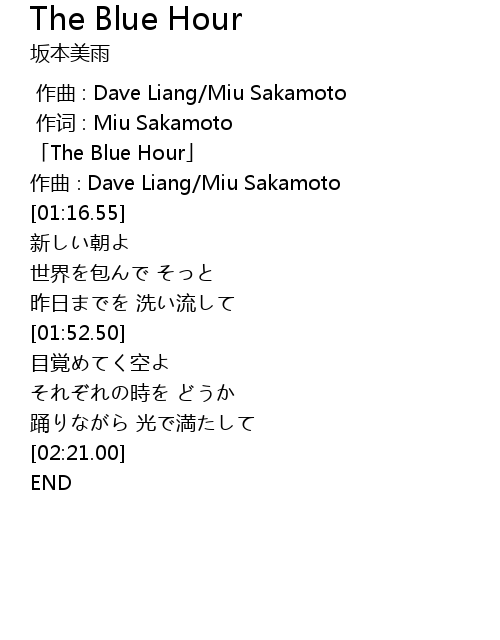 | [00:01.00] | 作词 : Miu Sakamoto |