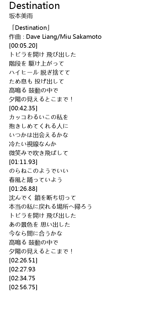 | [00:03.20] | zuo qu Dave Liang Miu Sakamoto |