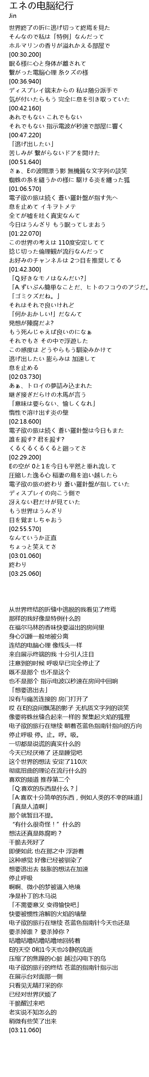 | [00:56.000] | さぁ、Eの波間漂う影 無機質な文字列の談笑 |