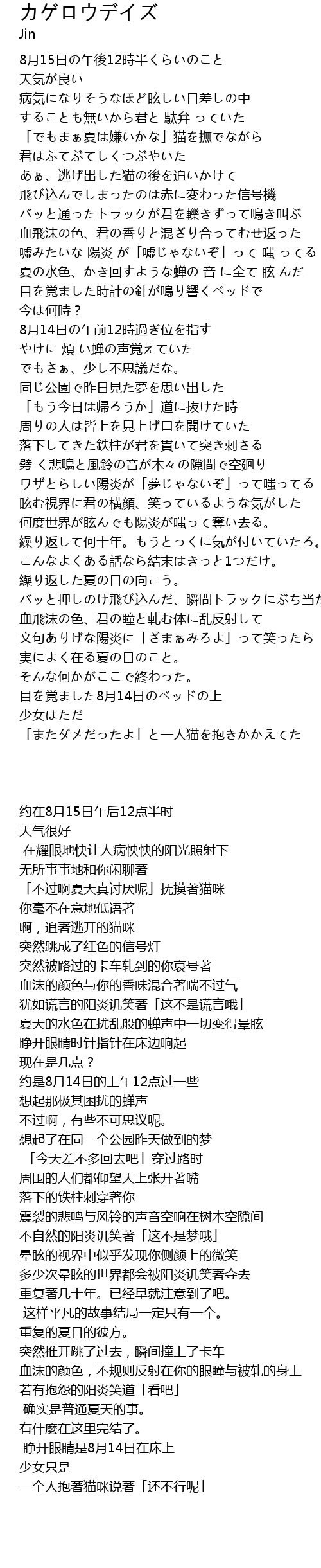 | [03:30.54] | 目を覚ました8月14日のベッドの上 |