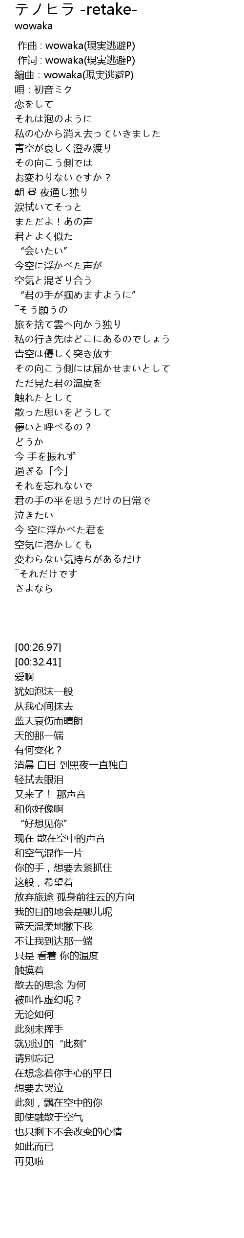| [00:00.00] | 作曲 : wowaka(現実逃避P) |