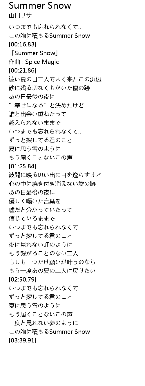 | [03:30.12] | この胸に積もるSummer Snow |