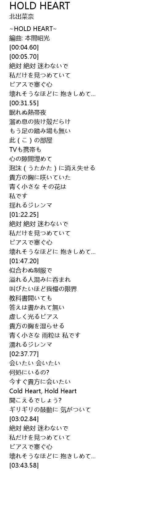 | [00:00.20] | ~HOLD HEART~ |