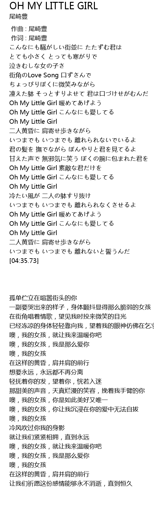 | [03:19.95] | Oh My Little Girl こんなにも愛してる |