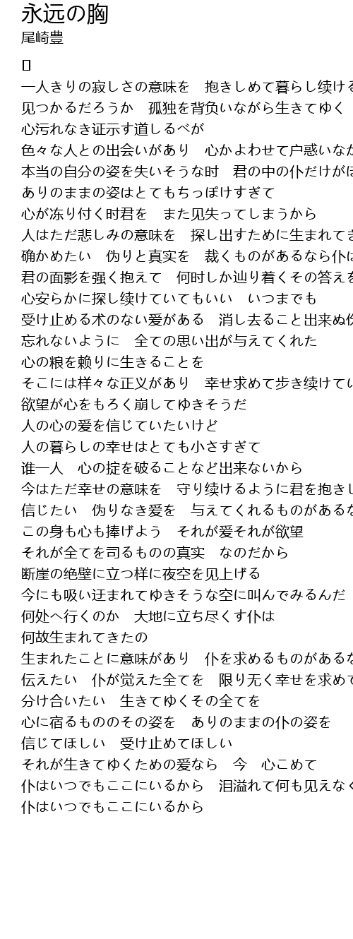 | 仆はいつでもここにいるから 泪溢れて何も见えなくても | |