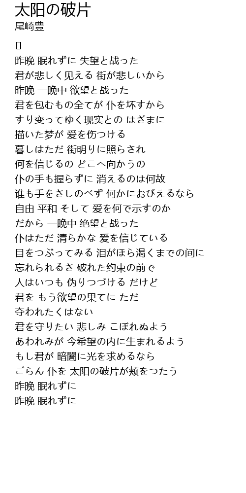 | ごらん 仆を 太阳の破片が颊をつたう | |