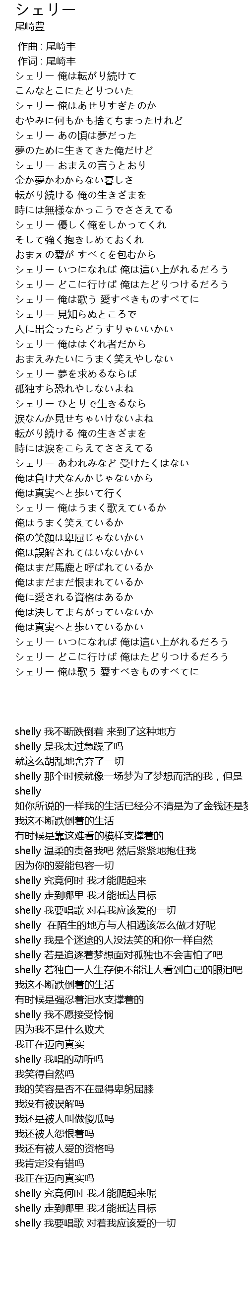 | [00:37.760] | シェリー あの頃は夢だった 夢のために生きてきた俺だけど |