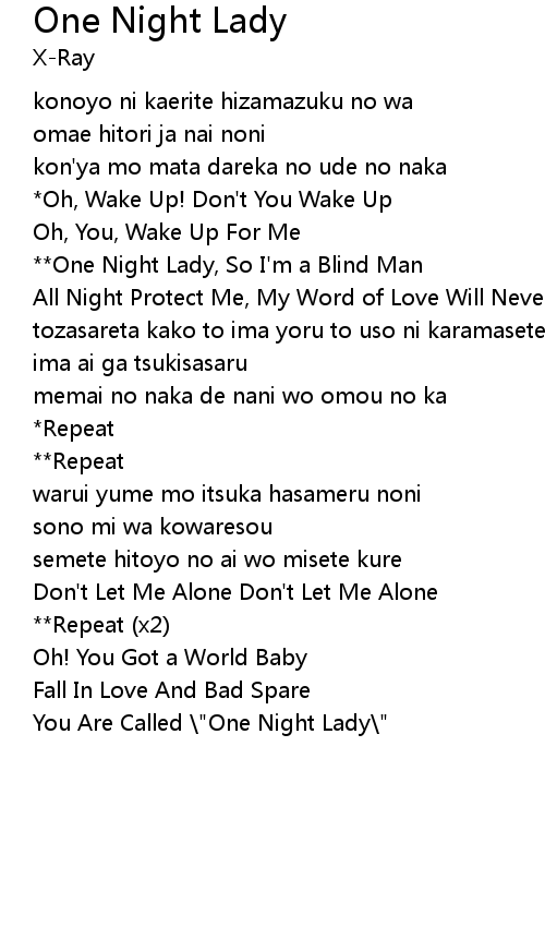 One Night Lady Lyrics