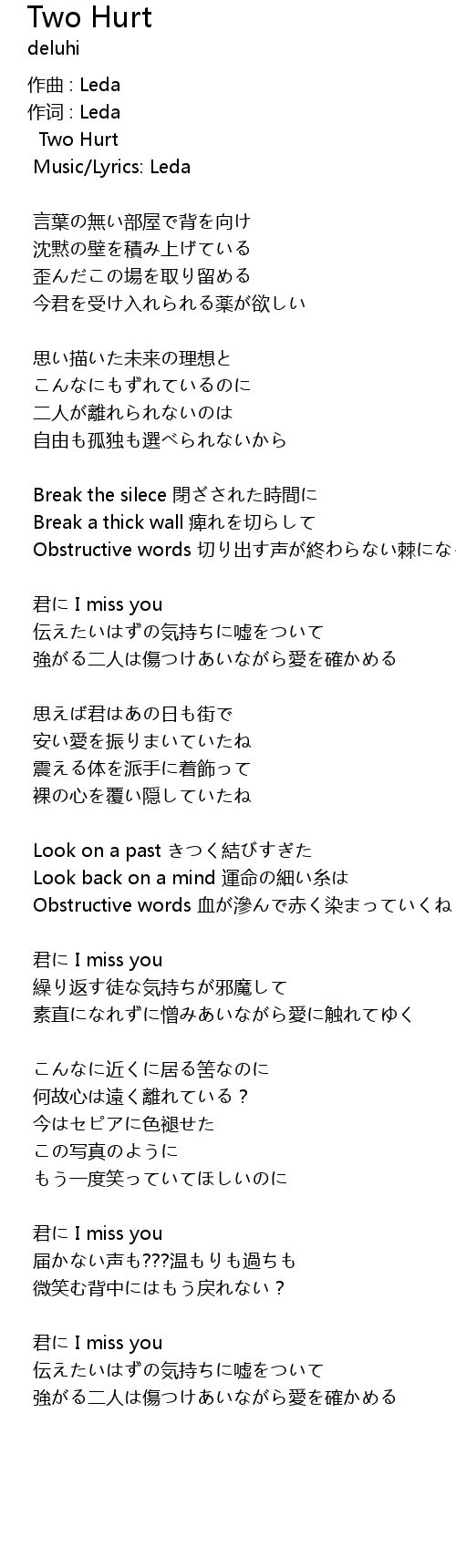 | Obstructive words 血が滲んで赤く染まっていくね | |