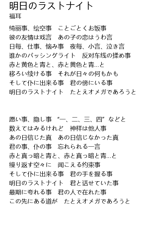 | Song | 明日のラストナイト |