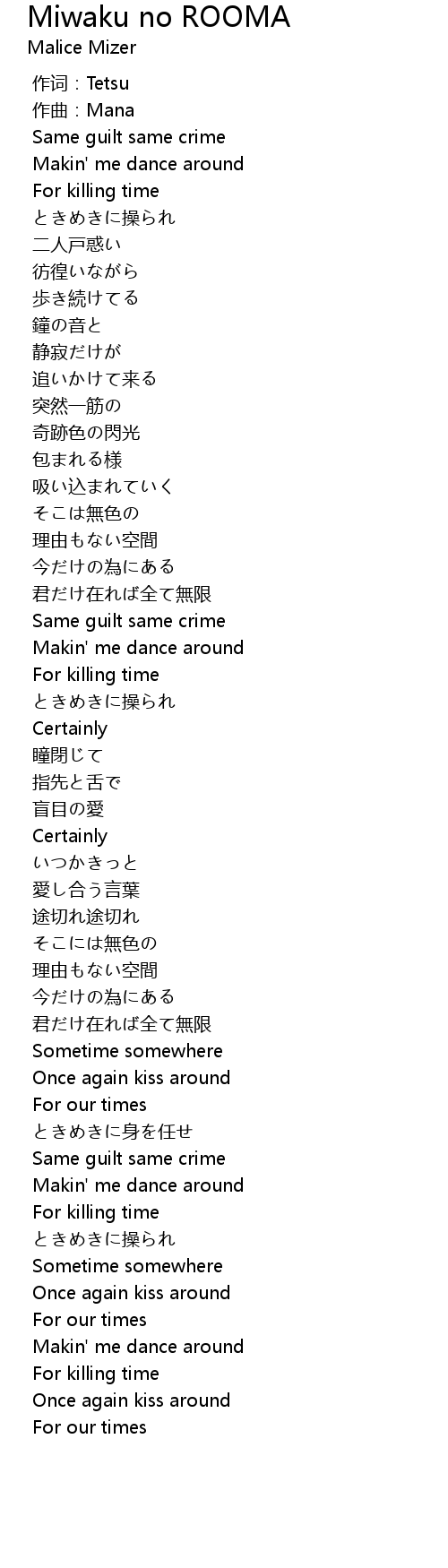 作词:Tetsu |