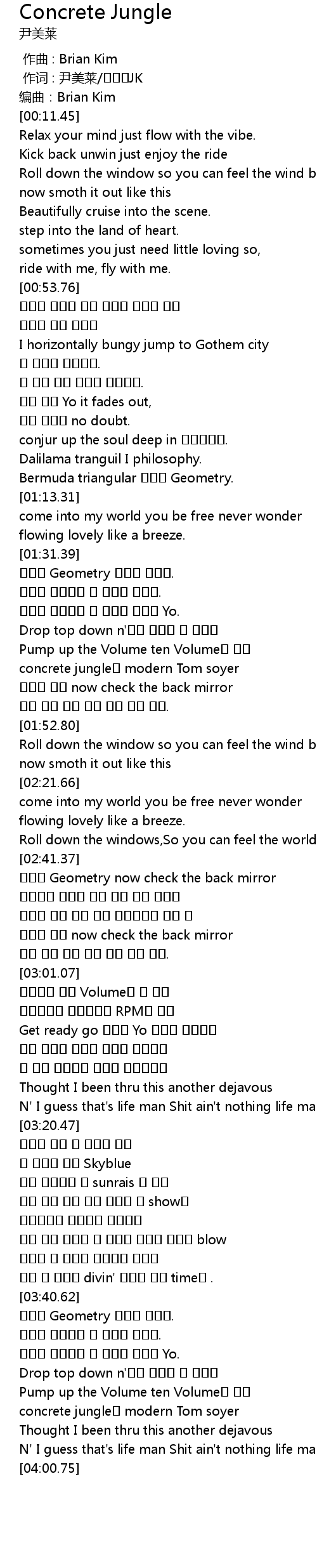 | [01:45.22] | concrete jungle속 modern Tom soyer |