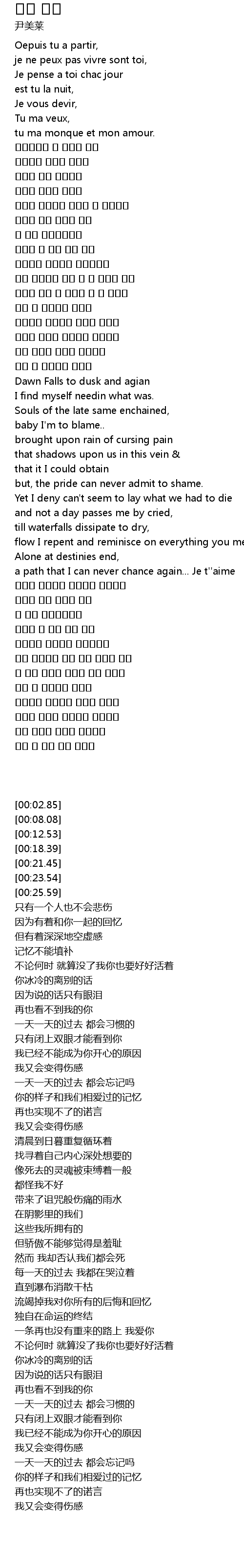 | [02:02.08] | 그대에 모습과 사랑했던 기억들을 |