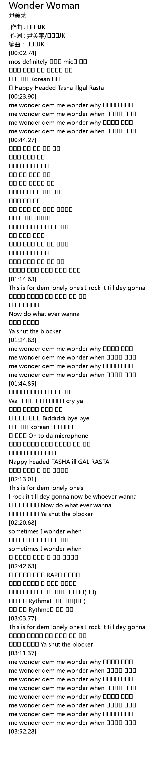 | [03:16.41] | me wonder dem me wonder when 외로운날 떠날까 |