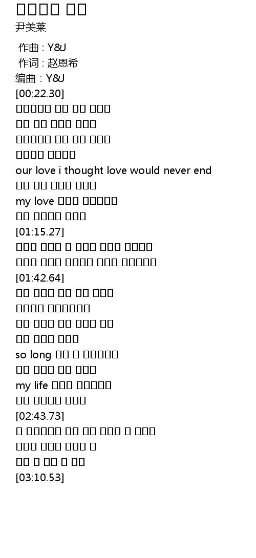 | [02:44.03] | 난 지켜갈게요 그대 없는 사랑도 내 눈물도 |