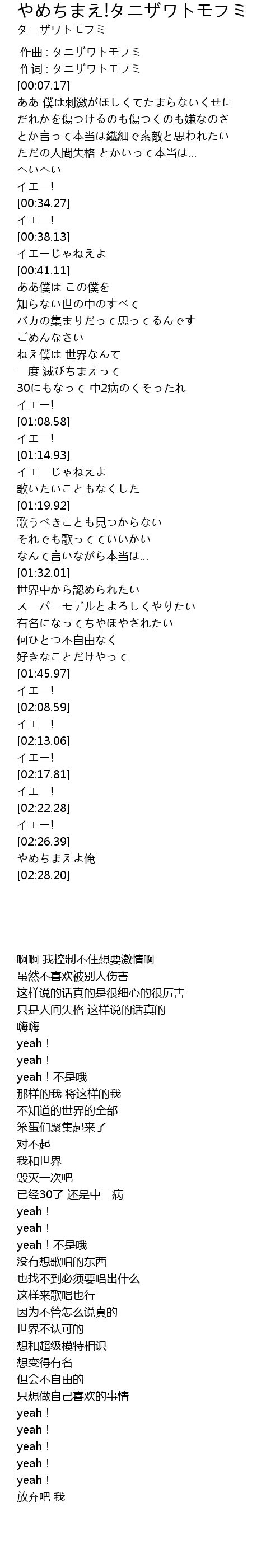| [01:02.40] | 30にもなって 中2病のくそったれ |