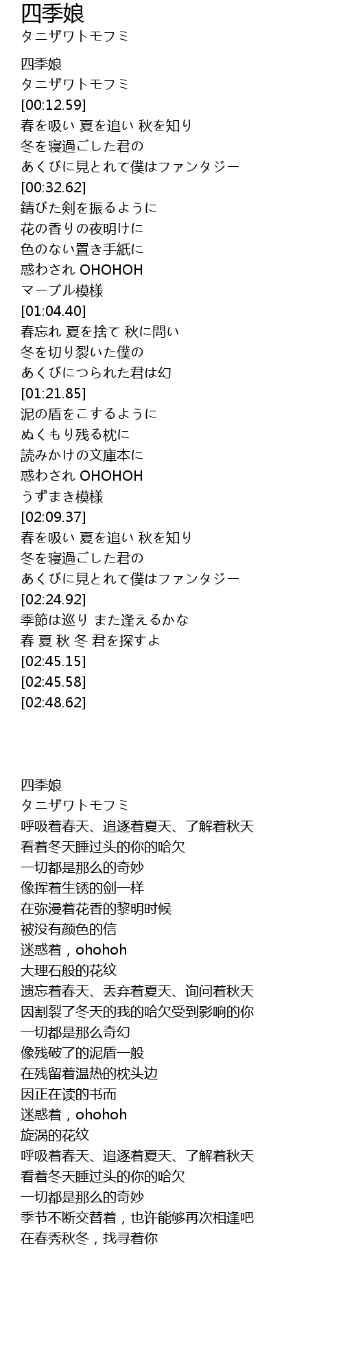 | [02:32.84] | chūn xià qiū dōng jūn tàn |