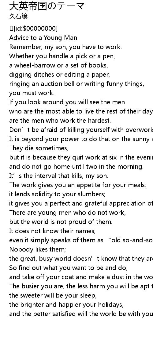 | [00:41.731] | Don' t be afraid of killing yourself with overwork. |