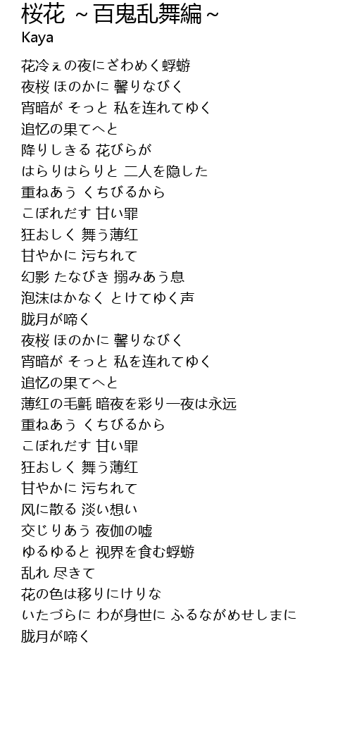 | [00:44.57] | 夜桜 ほのかに 馨りなびく |