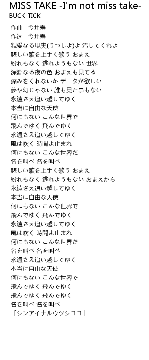 | Song | MISS TAKE -I'm not miss take- |