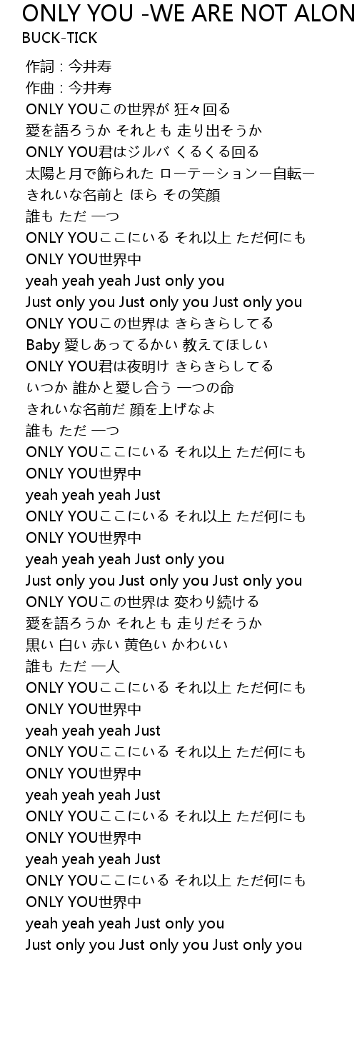 | [01:44.017] | ONLY YOUここにいる それ以上 ただ何にも |