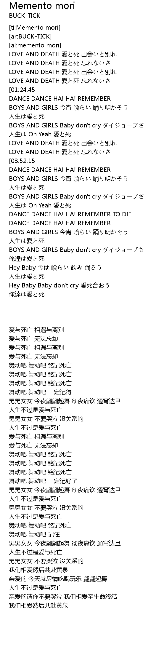 | [03:55.52][03:52.15][03:48.87] | DANCE DANCE HA! HA! REMEMBER TO DIE |