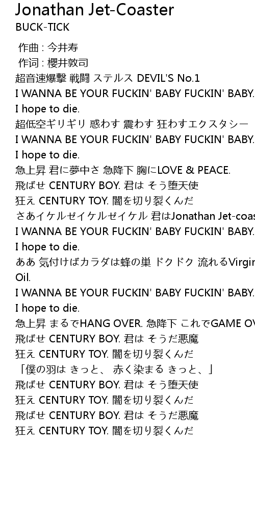 | [00:40.95] | I WANNA BE YOUR FUCKIN' BABY FUCKIN' BABY. |