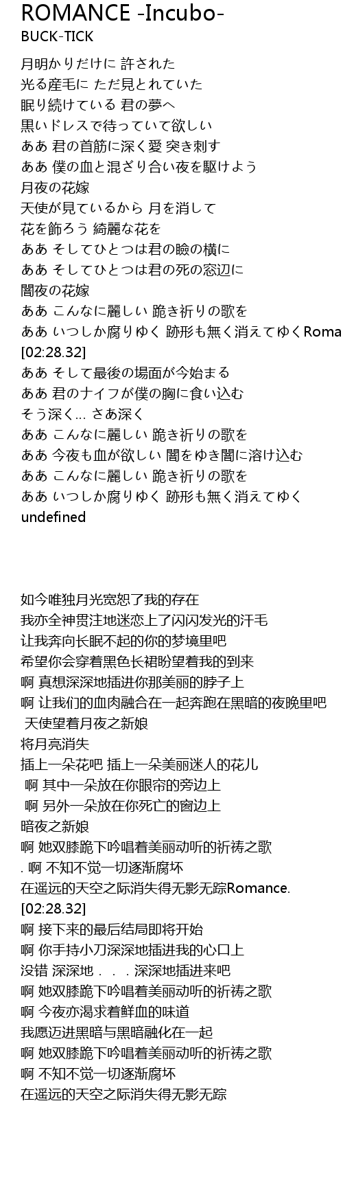 | [02:18.40] | ああ いつしか腐りゆく 跡形も無く消えてゆくRomance |
