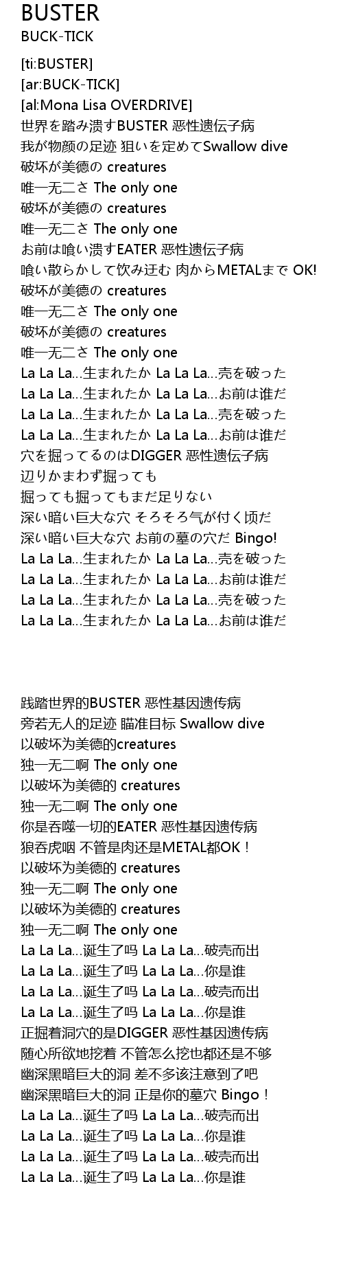 | [01:37.43] | La La La…生まれたか La La La…お前は谁だ |