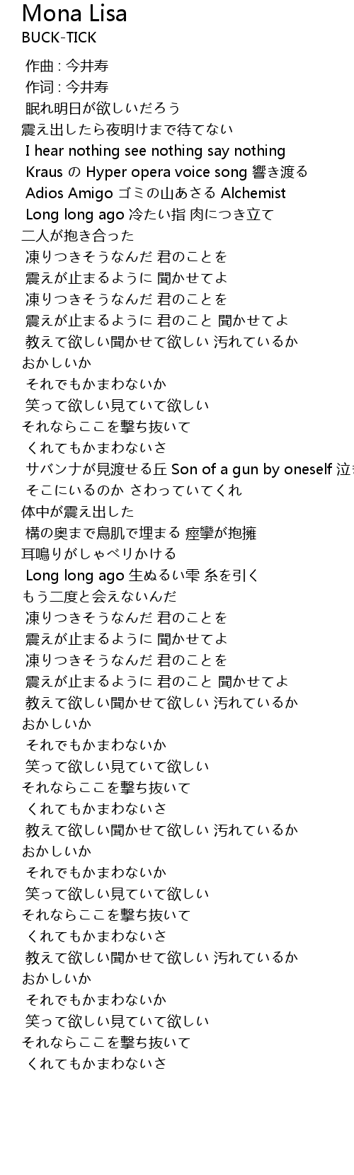 | [00:01.00] | 作词 : 今井寿 |