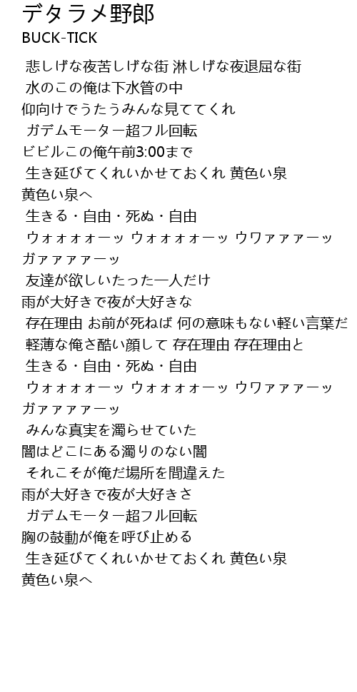 | [02:14.950] | 存在理由 お前が死ねば 何の意味もない軽い言葉だ |