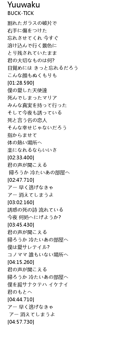 | [04:31.490] | 僕を殺サナクテハ イケナイ |
