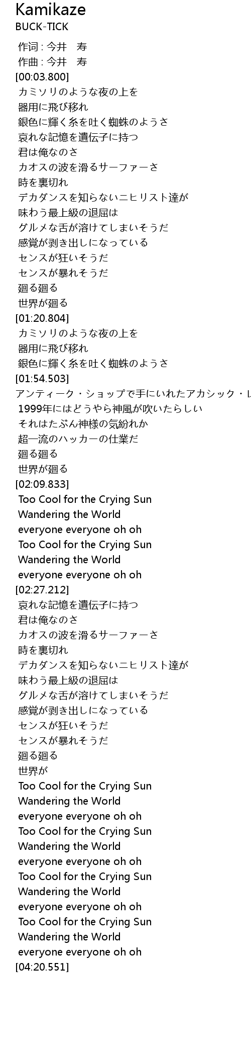 | [01:58.934] | 1999年にはどうやら神風が吹いたらしい |