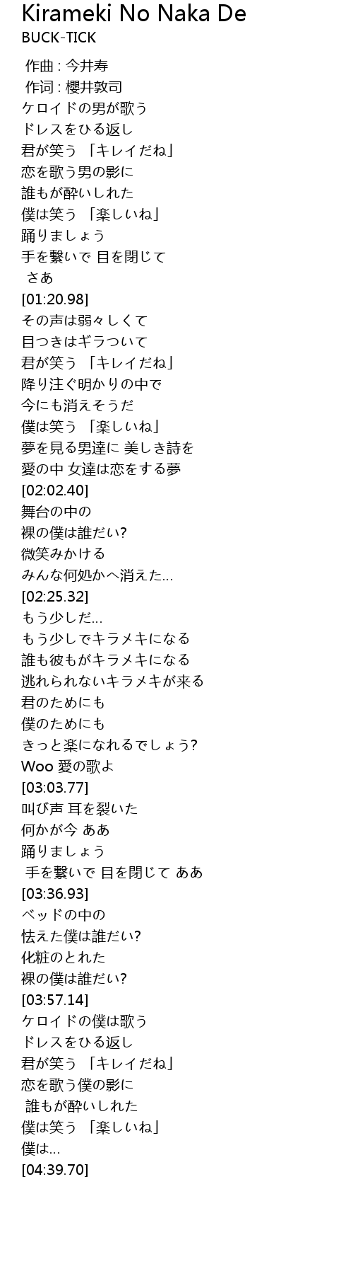 | [00:01.00] | 作词 : 櫻井敦司 |