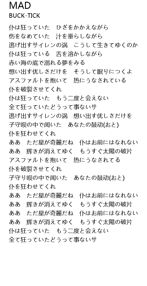 | [01:42.05] | 仆は狂っていた もう二度と会えない |