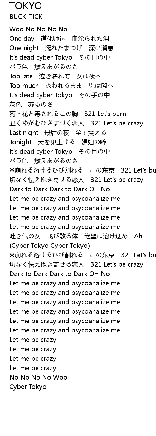 | [00:37.08] | It's dead cyber Tokyo その目の中 |