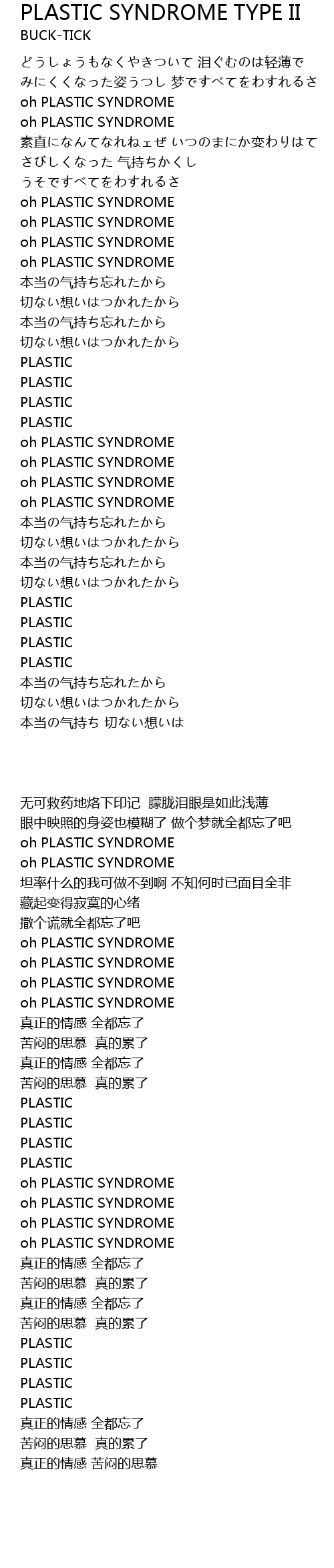 | [00:44.66] | oh PLASTIC SYNDROME |