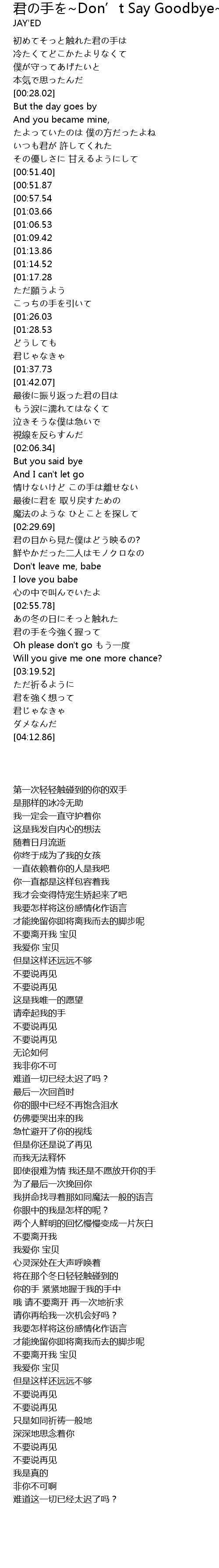 | [03:55.84][01:28.53] | Don't say goodbye |