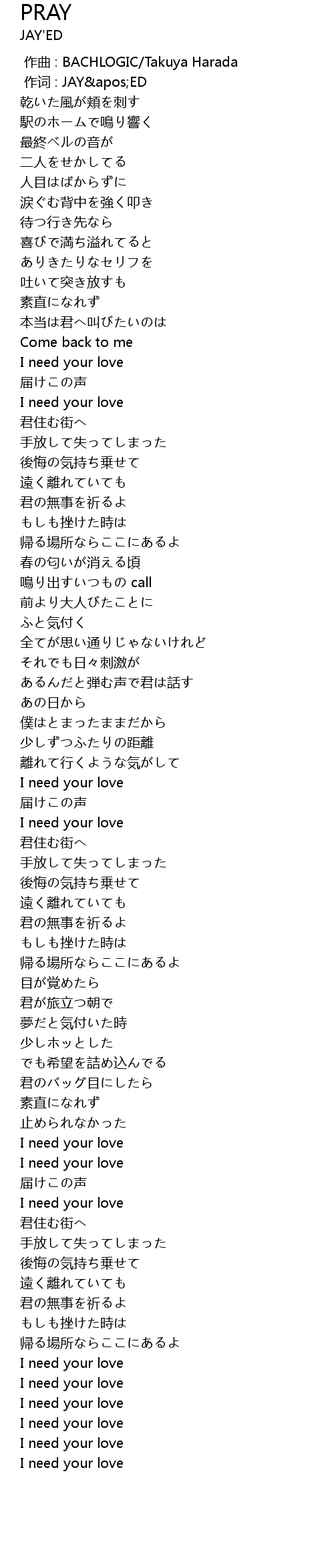 | [03:20.000] | I need your love |