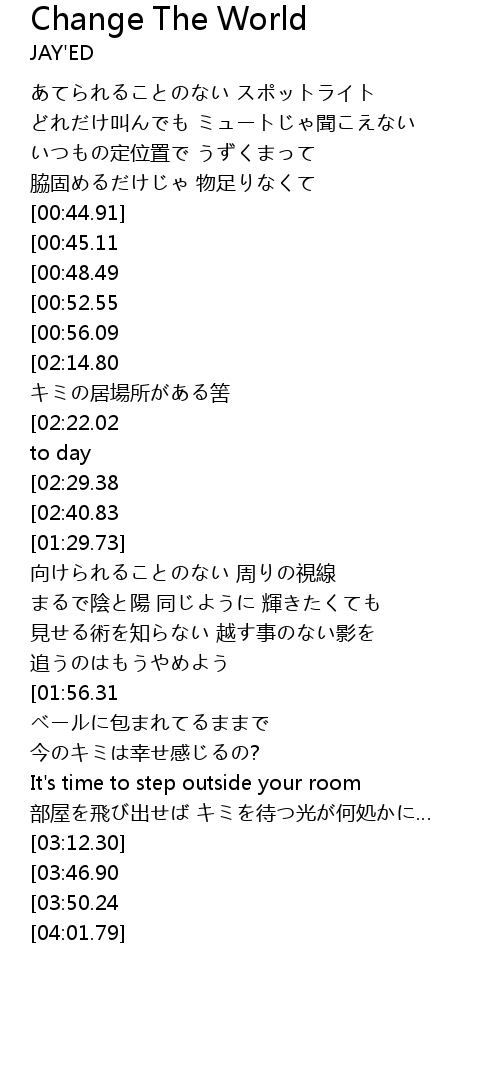| [03:57.51][03:50.24] | We gotta change the world,change,change the world |