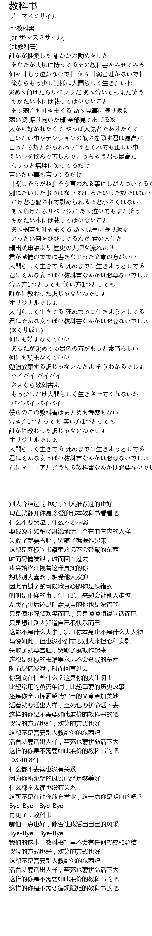 | [04:32.64] | 僕らのこの教科書はまとめも考察もない |