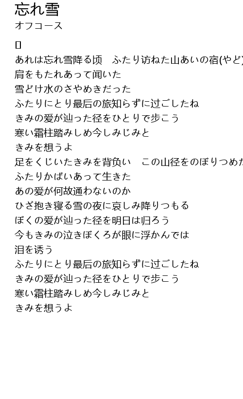 | Song | 忘れ雪 |
