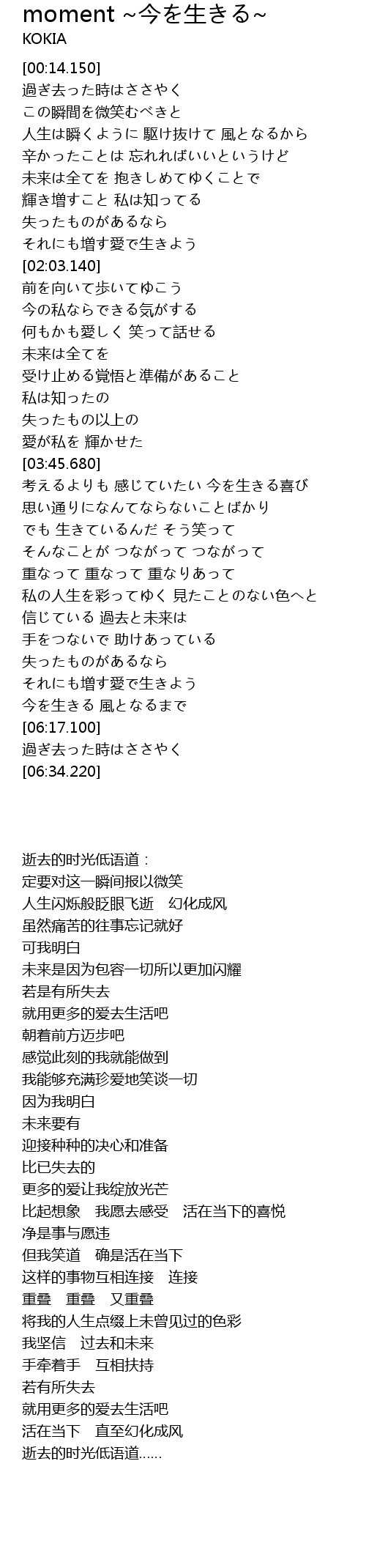 | [04:13.830] | 考えるよりも 感じていたい 今を生きる喜び |