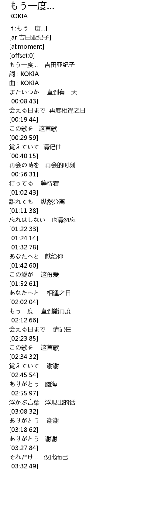 | [00:00.40] | もう一度... - 吉田亚纪子 |
